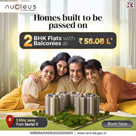 The Dhoot Group has a new, excellent project that will improve your quality of life with its affordable prices and cutting-edge amenities. Dhoot Nucleus provides 457 well-ventilated, 2BHK flats in Newtown, Rajarhat that can be fitted to your preference. A lavish existence surrounded by stunning nature, complete with incredible facilities such as a swimming pool, gym, barbecue terrace, yoga room, and many other things that one can imagine.
