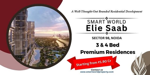 Don’t miss this pre-launch opportunity at Smart World Elie Saab, Sector 98. With branded residences and service apartments, the project caters to both end users and investors. Apartment sizes range from 750 sq. ft. to 4000 sq. ft., offering multiple options. Pre-launch pricing, an EOI of ₹25 lakhs, and structured payment plans make entry easier. Designed with global standards and hospitality services, this project promises a refined living experience in a fast-growing Noida location.