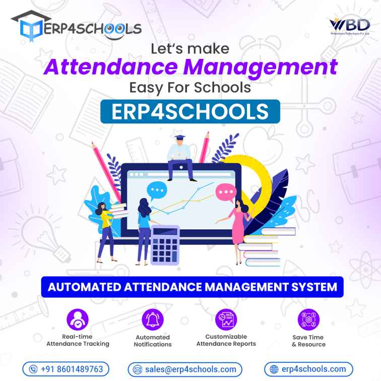 ERP4Schools is a trusted School ERP software designed to simplify and digitize school management. We provide an all-in-one School Management System that streamlines admissions, attendance, examinations, fee management, and performance tracking helping institutions operate more efficiently and transparently. Our powerful communication tools for schools enhance collaboration between administrators, teachers, students, and parents through real-time notifications, announcements, and mobile app access on Android and iOS. At ERP4Schools, we believe technology should make education management easier, not complicated. Our secure, user-friendly, and scalable ERP solution empowers schools to reduce manual work, improve productivity, and focus on delivering quality education. ERP4Schools Smart School Management Made Simple.