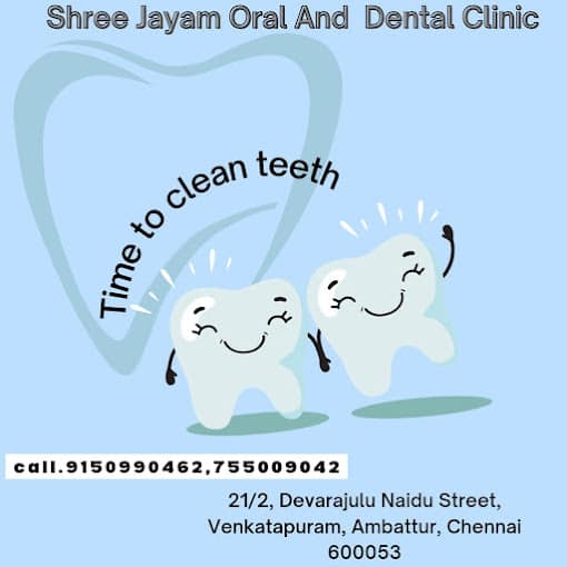 “Shree Jayam Oral & Dental Clinic, your premier destination for top-notch dental care in Ambattur. As the leading dentist in Ambattur, we specialize in providing comprehensive dental services tailored to meet your needs. Our state-of-the-art dental clinic in Ambattur offers a wide range of treatments, including implants in Ambattur & root canal treatment in Ambattur, delivered with precision & expertise Whether you require routine dental check-ups, cosmetic enhancements, orspecialized procedures like implants in Ambattur & root canal treatment in Ambattur, our experienced team is dedicated to delivering exceptional result We prioritize patient comfort and satisfaction, ensuring a stress-free and pleasantdental experience from start to finish”
